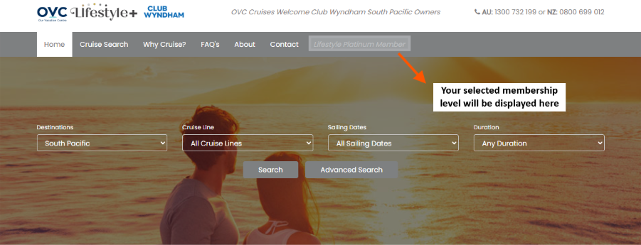 Access your OVC Cruises portal: https://ovccruises.com.au/ and select your membership level: